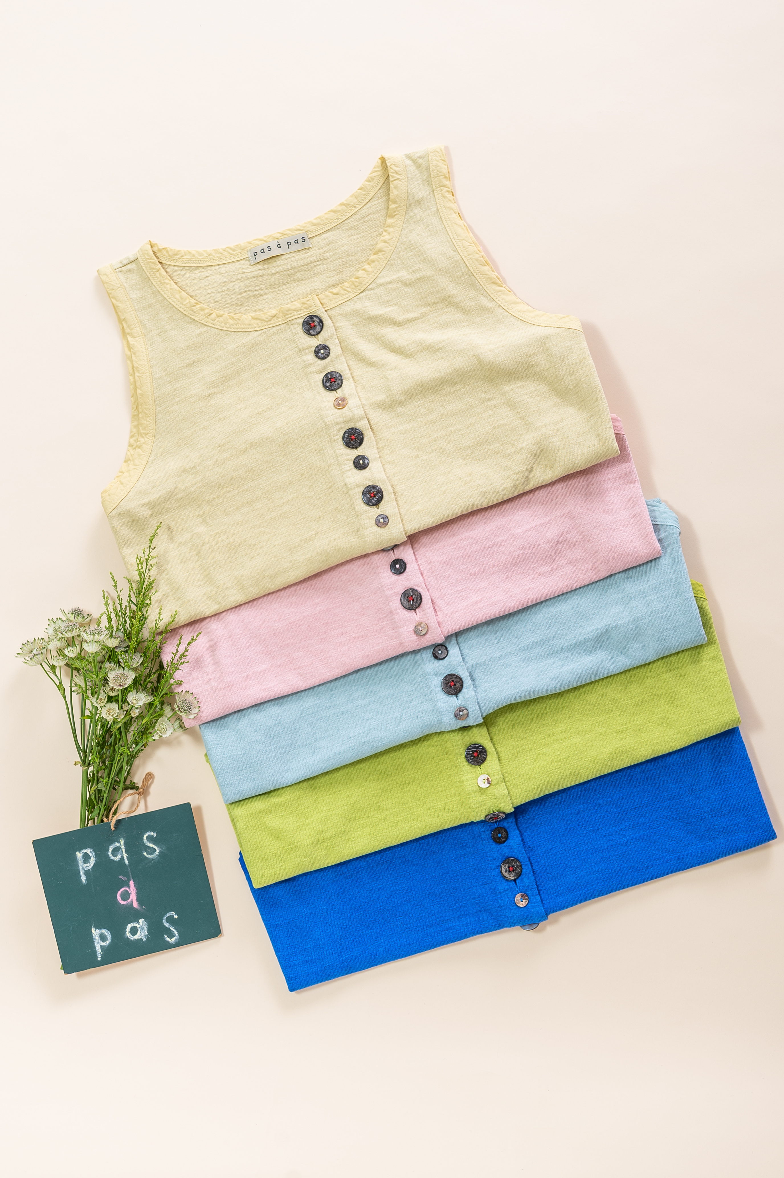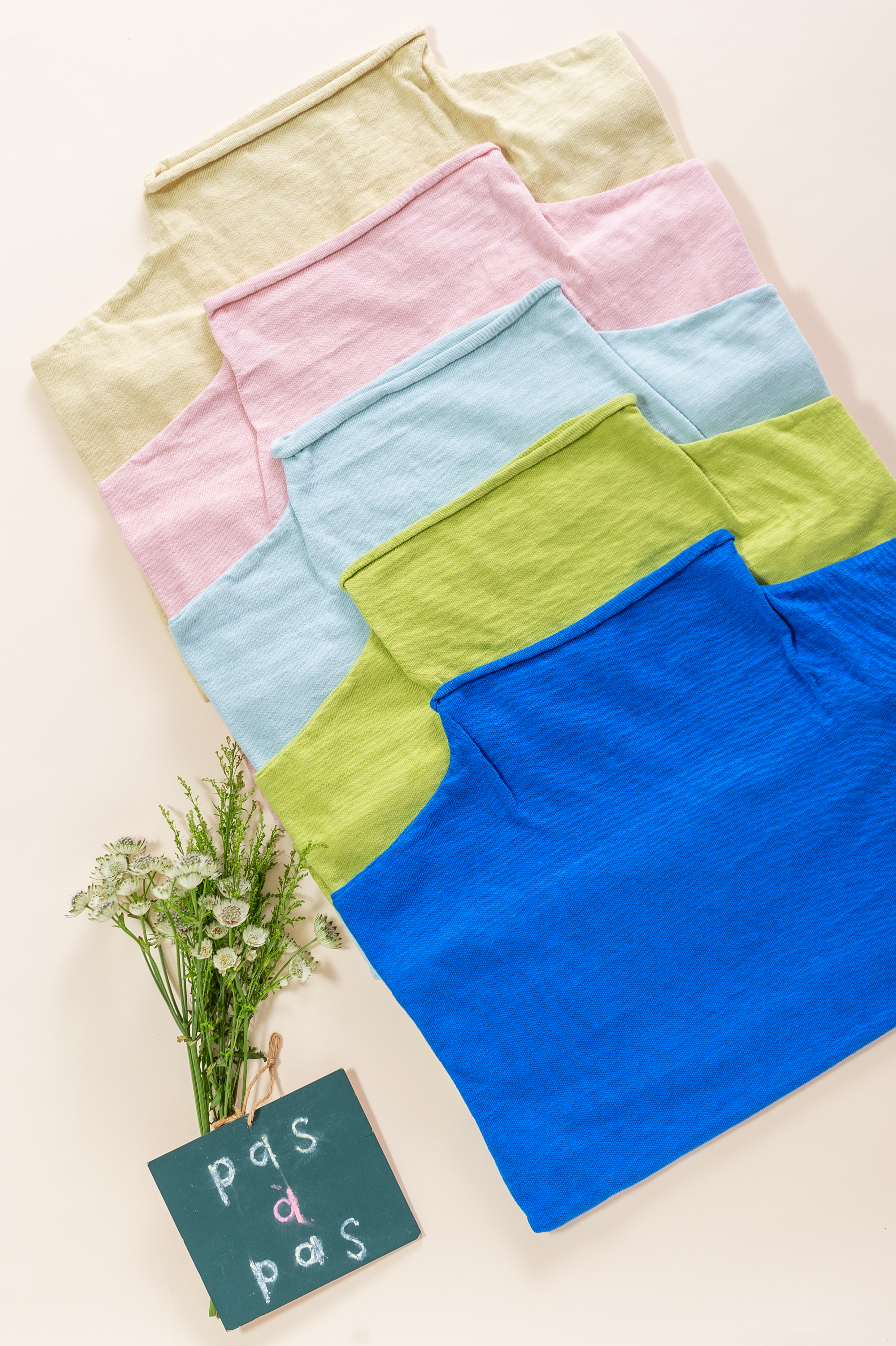 春の新色登場♪ムラ糸を使用したオリジナル天竺〈ショート丈ベスト〉