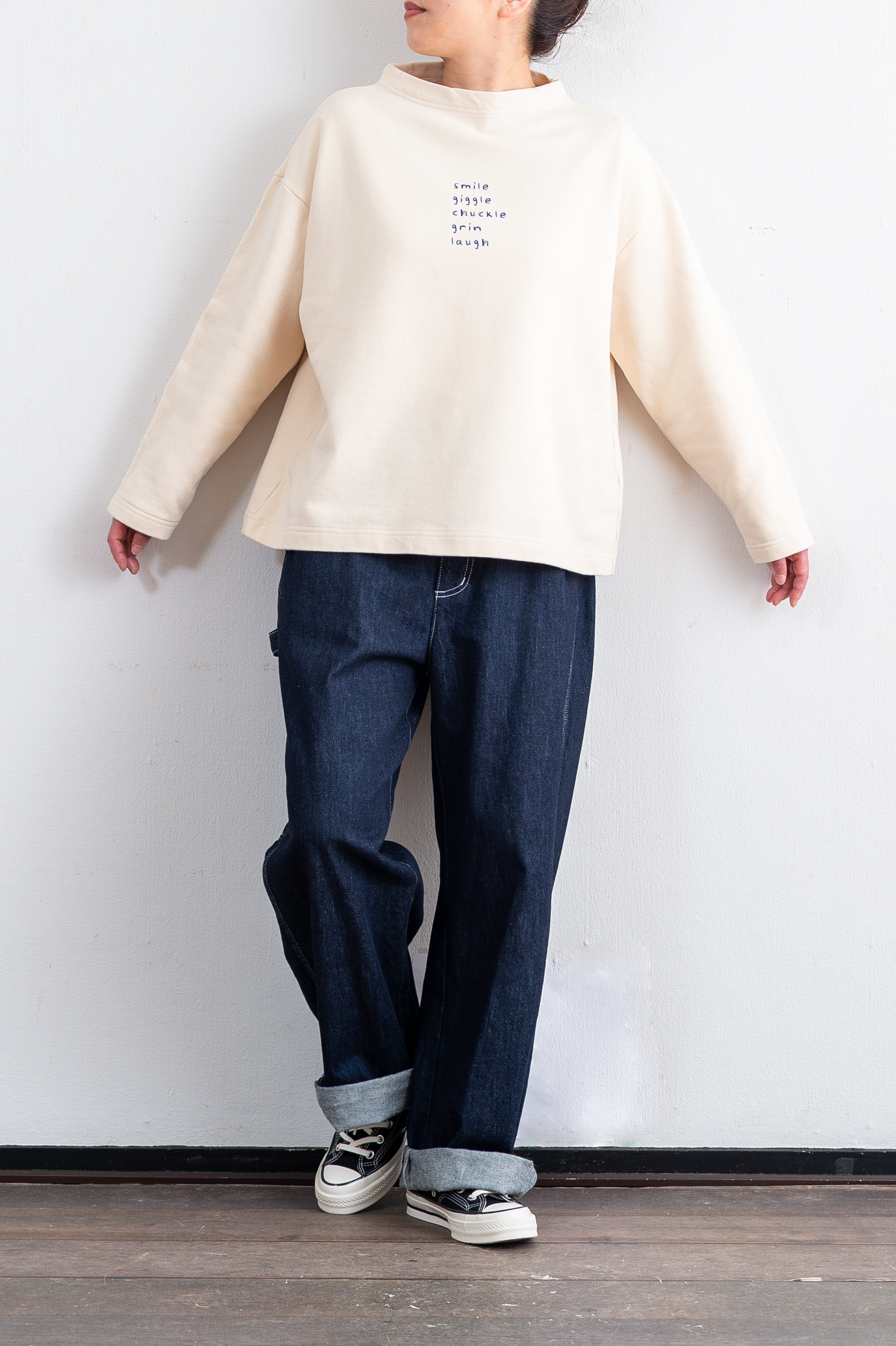 ムラ糸を使用したオリジナル天竺〈ボトルネックチュニック丈プルオーバー〉