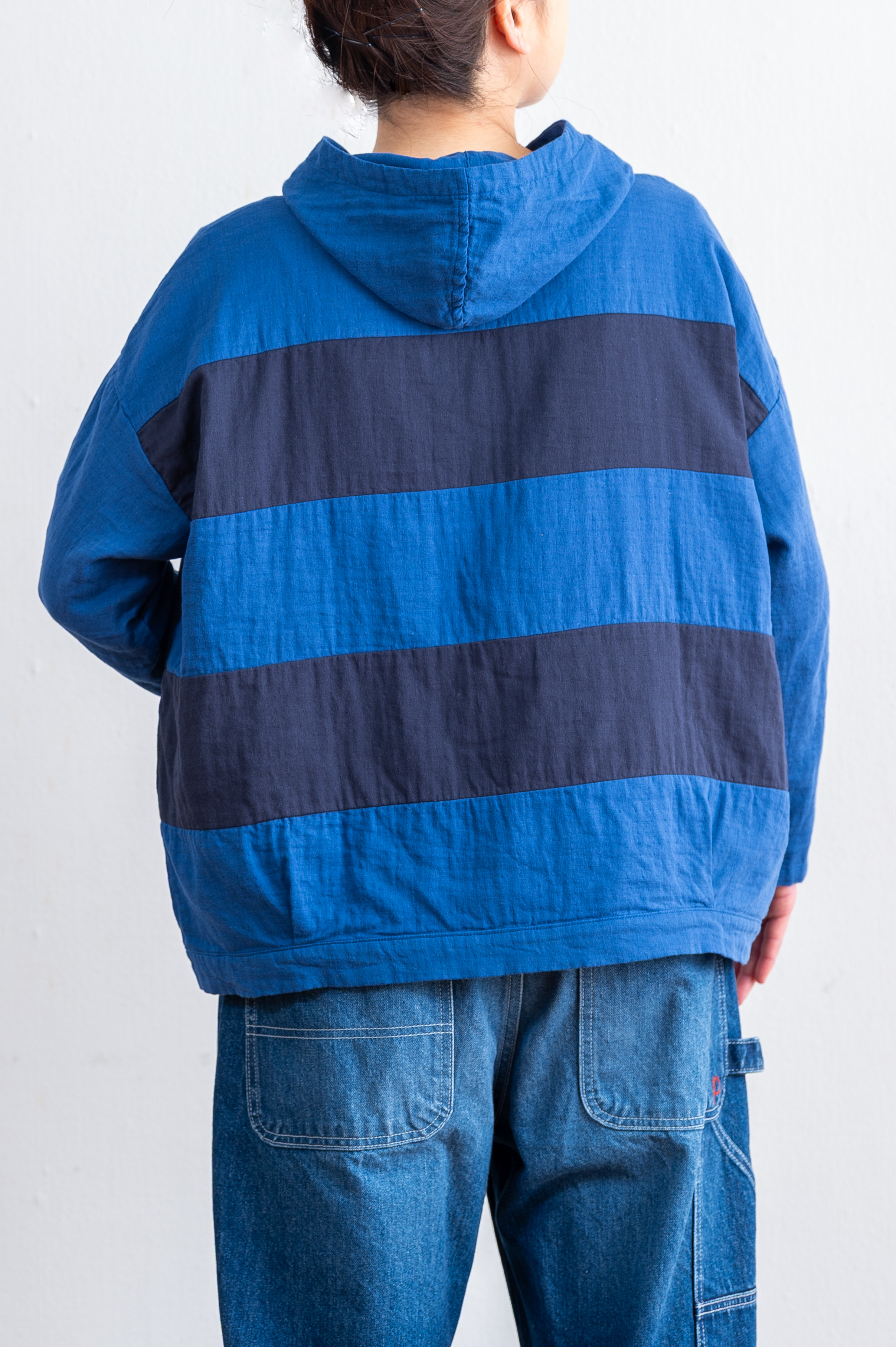 Wガーゼボーダー切替パーカー