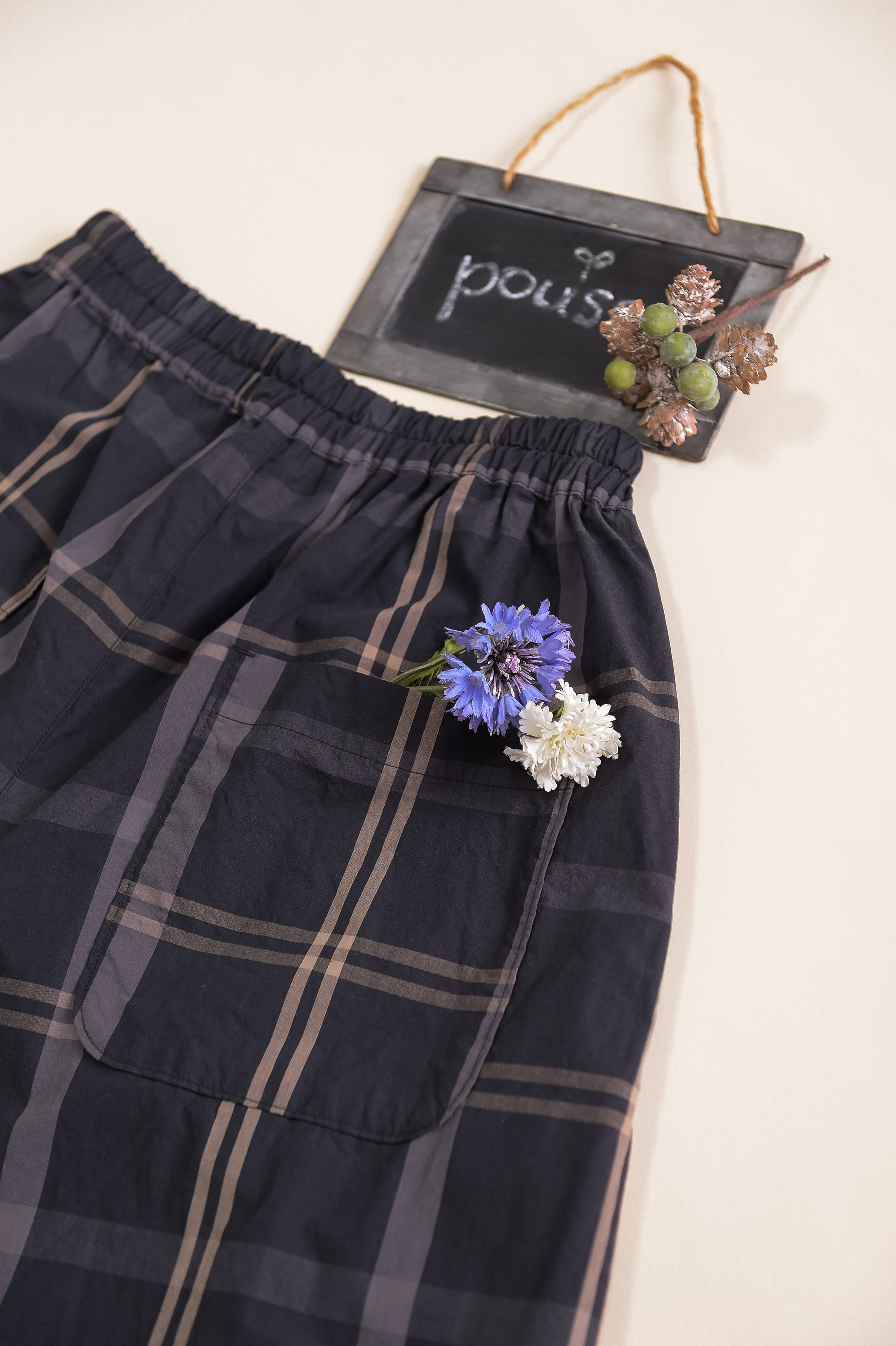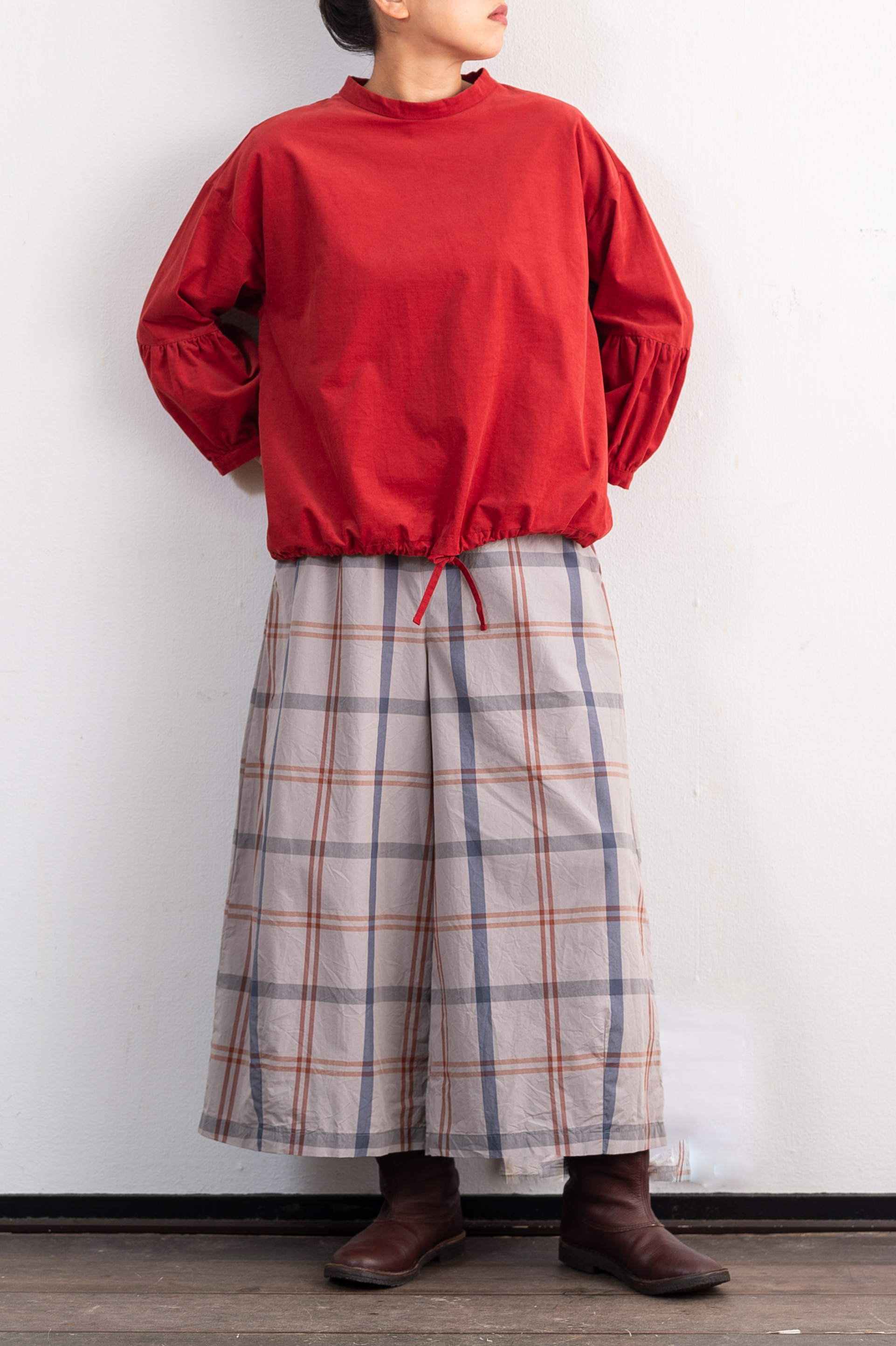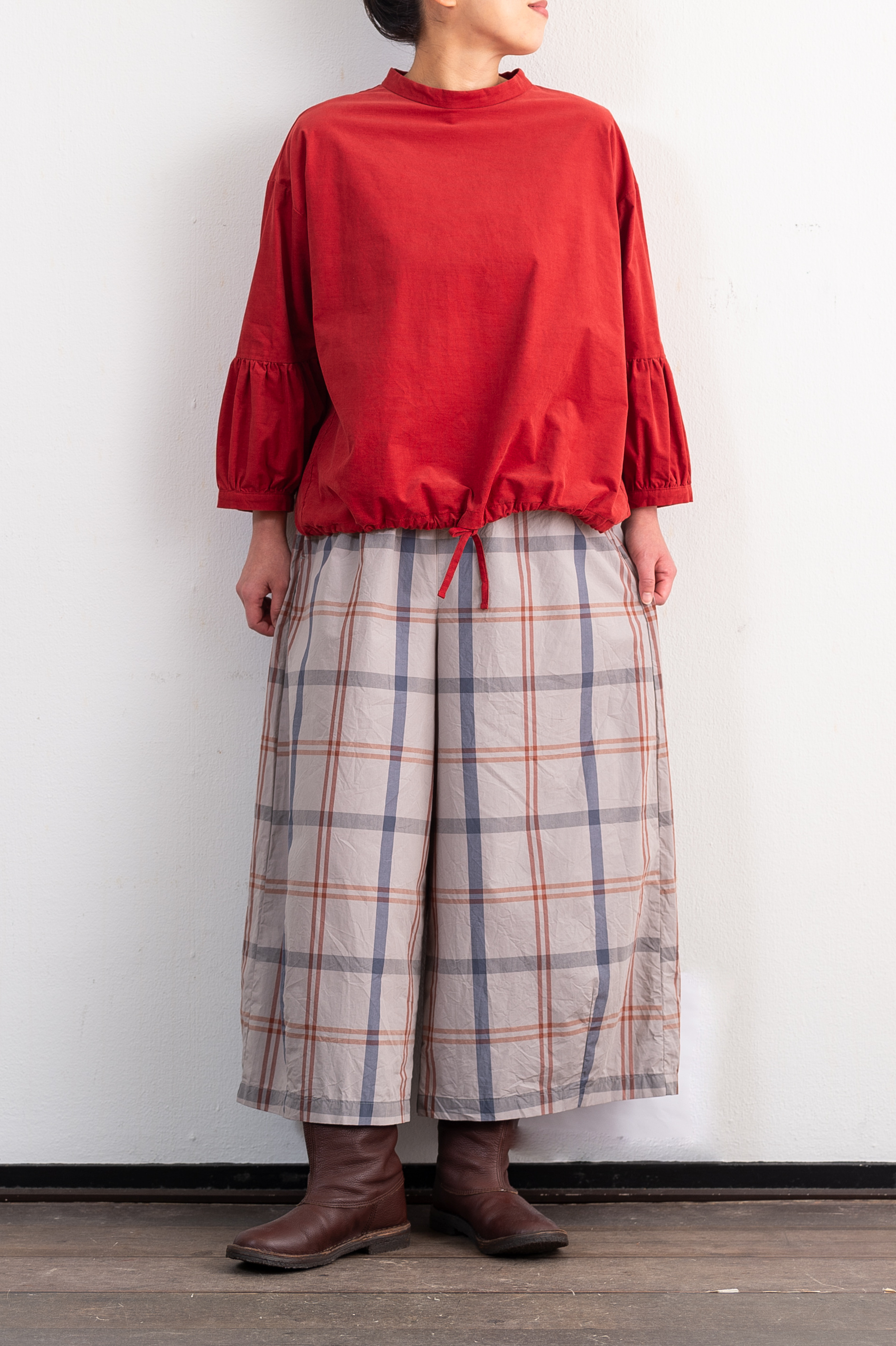 落ち着いた色味のタイプライターチェック柄のワイドパンツ。脚のラインを拾わずゆったりリラックス感のあるワイドシルエットに。大きなチェック柄が目を引く、これからの季節にぴったりのアイテムです。