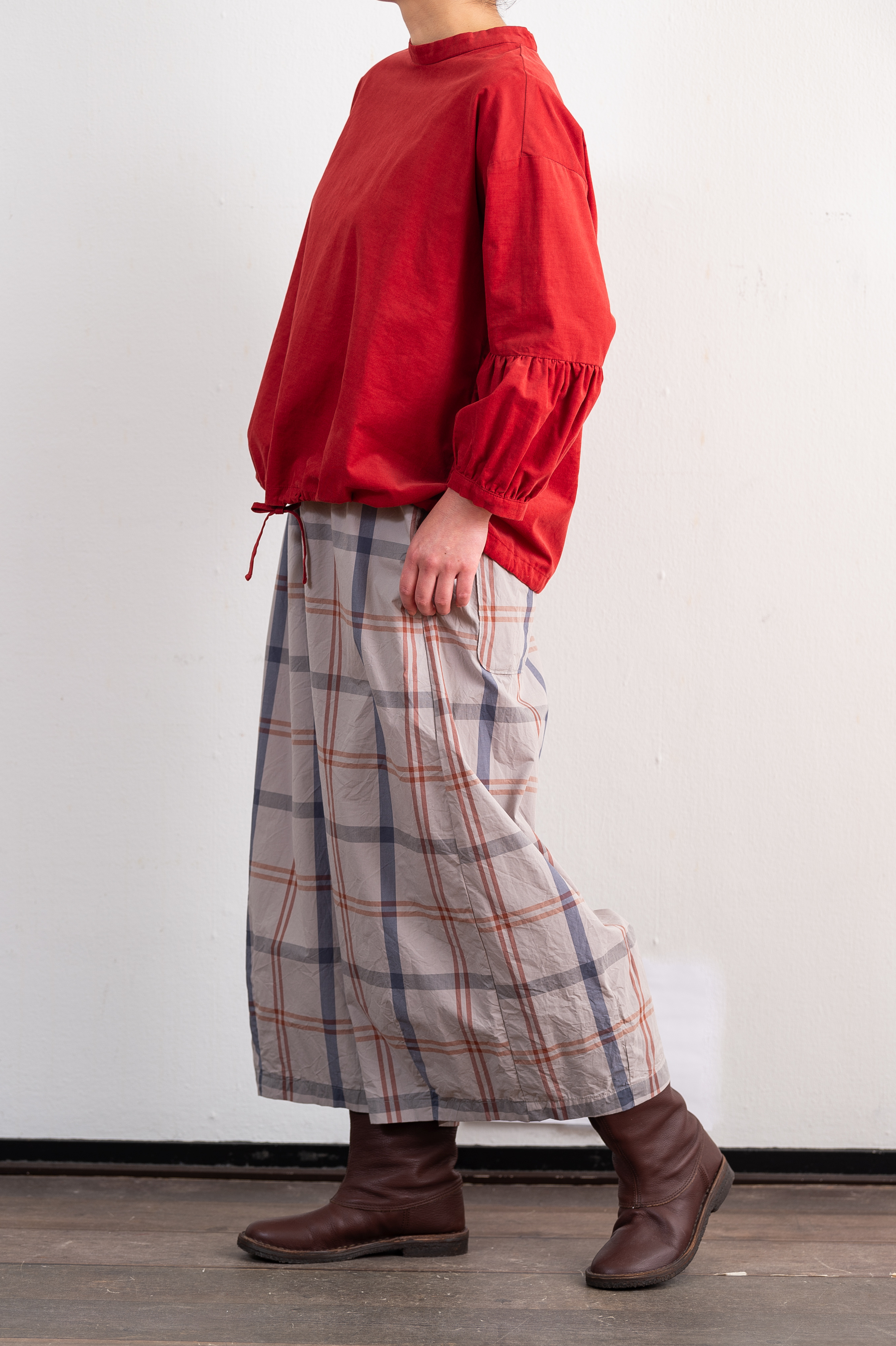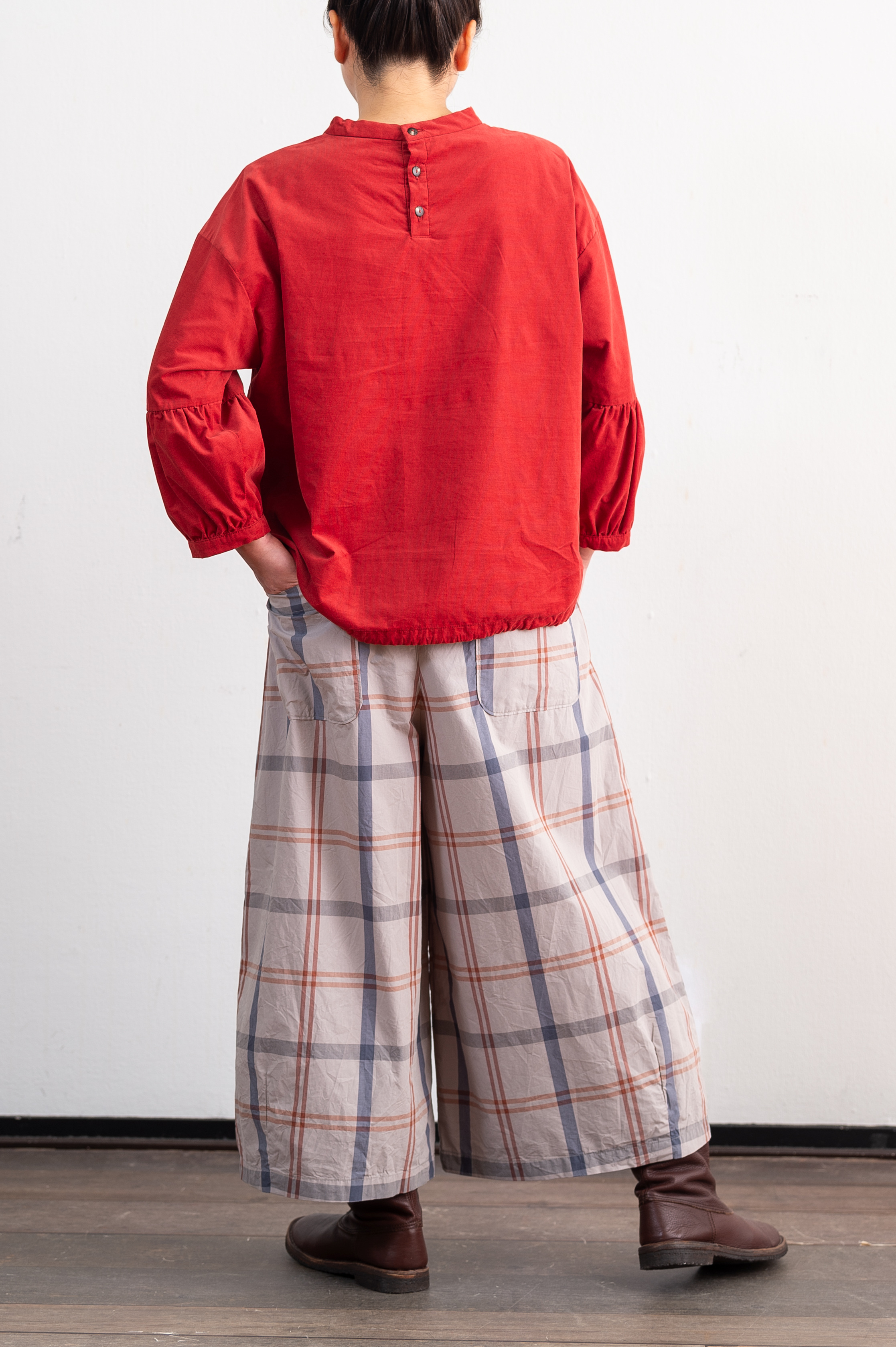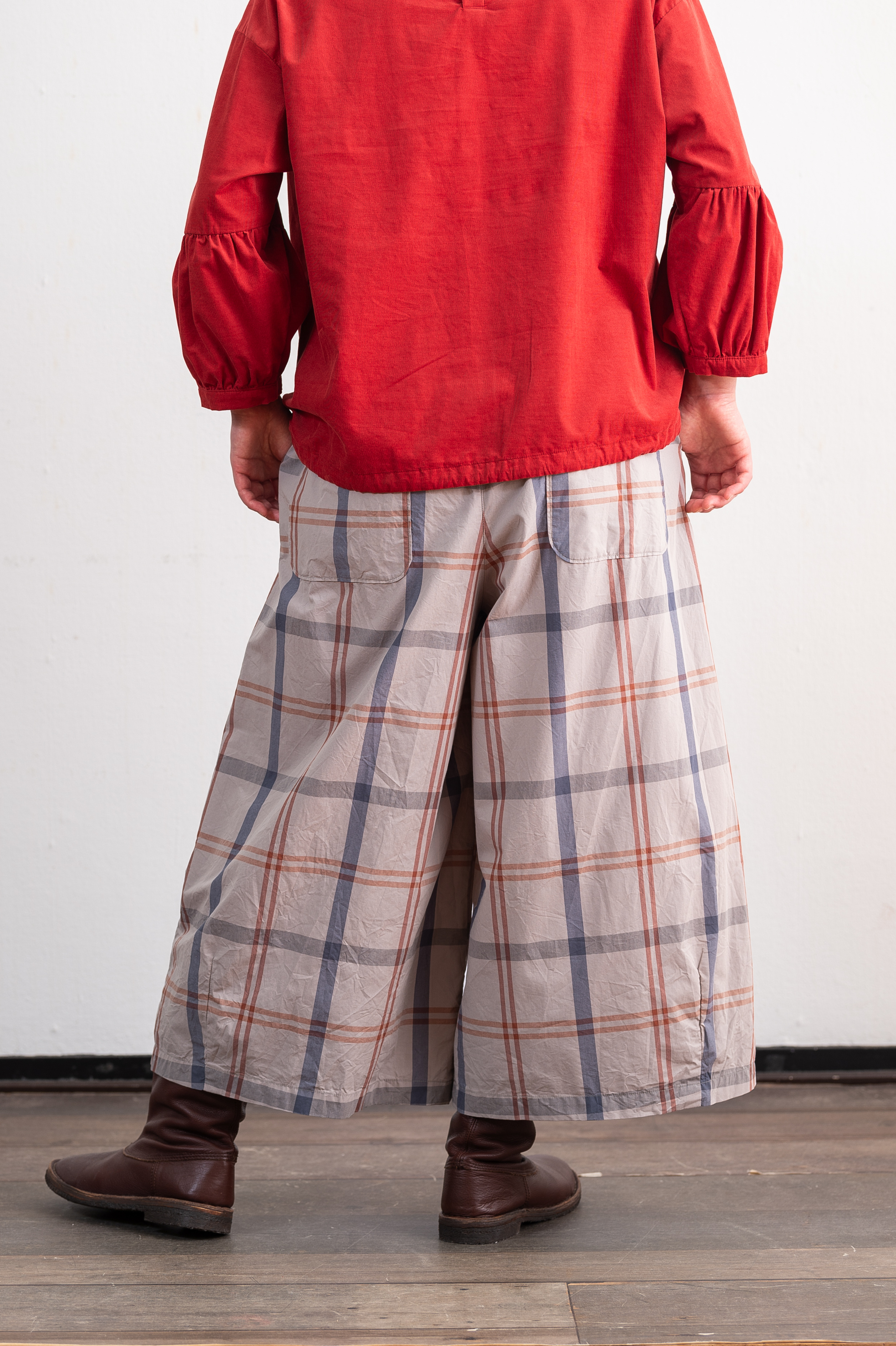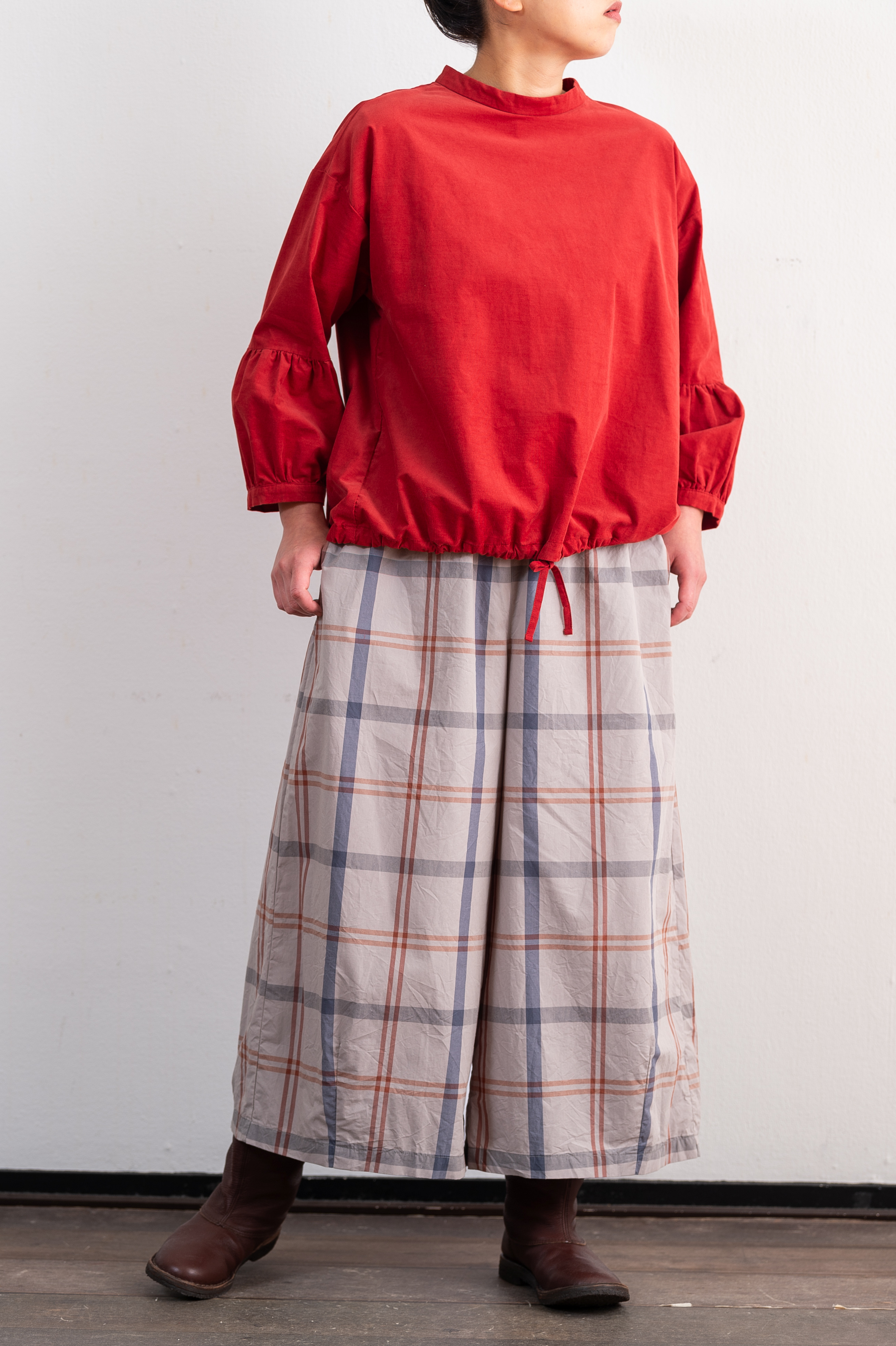 落ち着いた色味のタイプライターチェック柄のワイドパンツ。脚のラインを拾わずゆったりリラックス感のあるワイドシルエットに。大きなチェック柄が目を引く、これからの季節にぴったりのアイテムです。