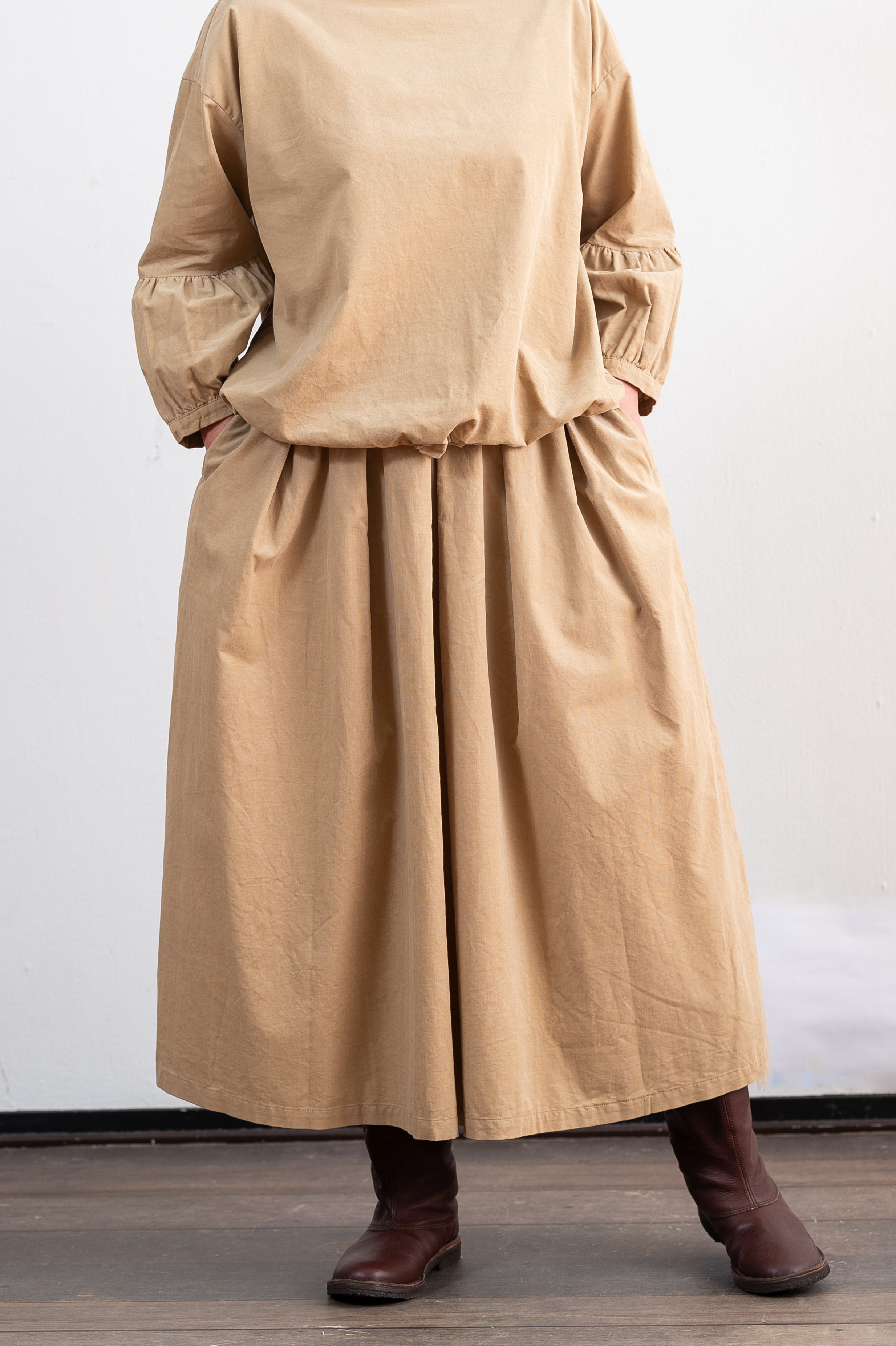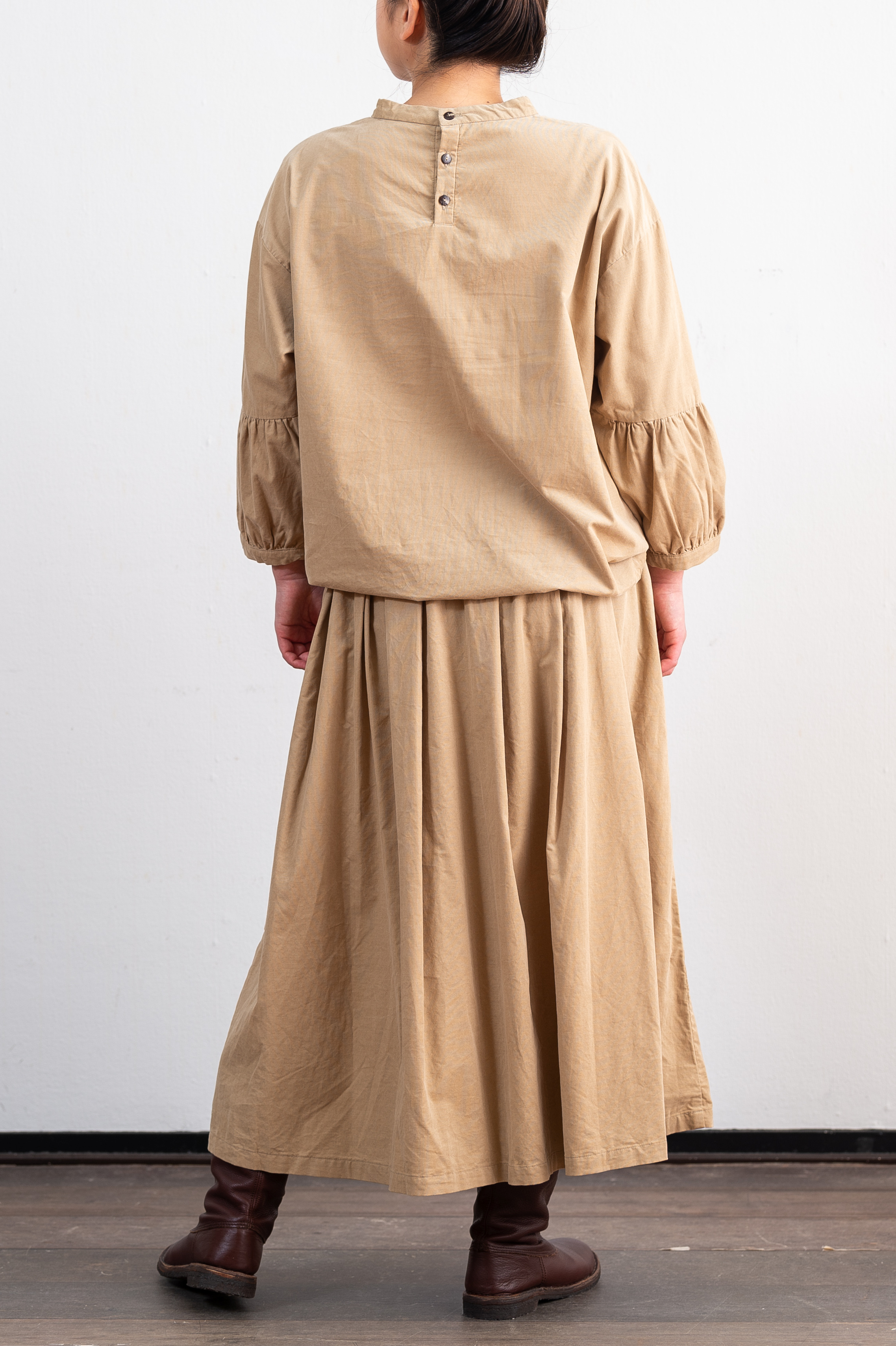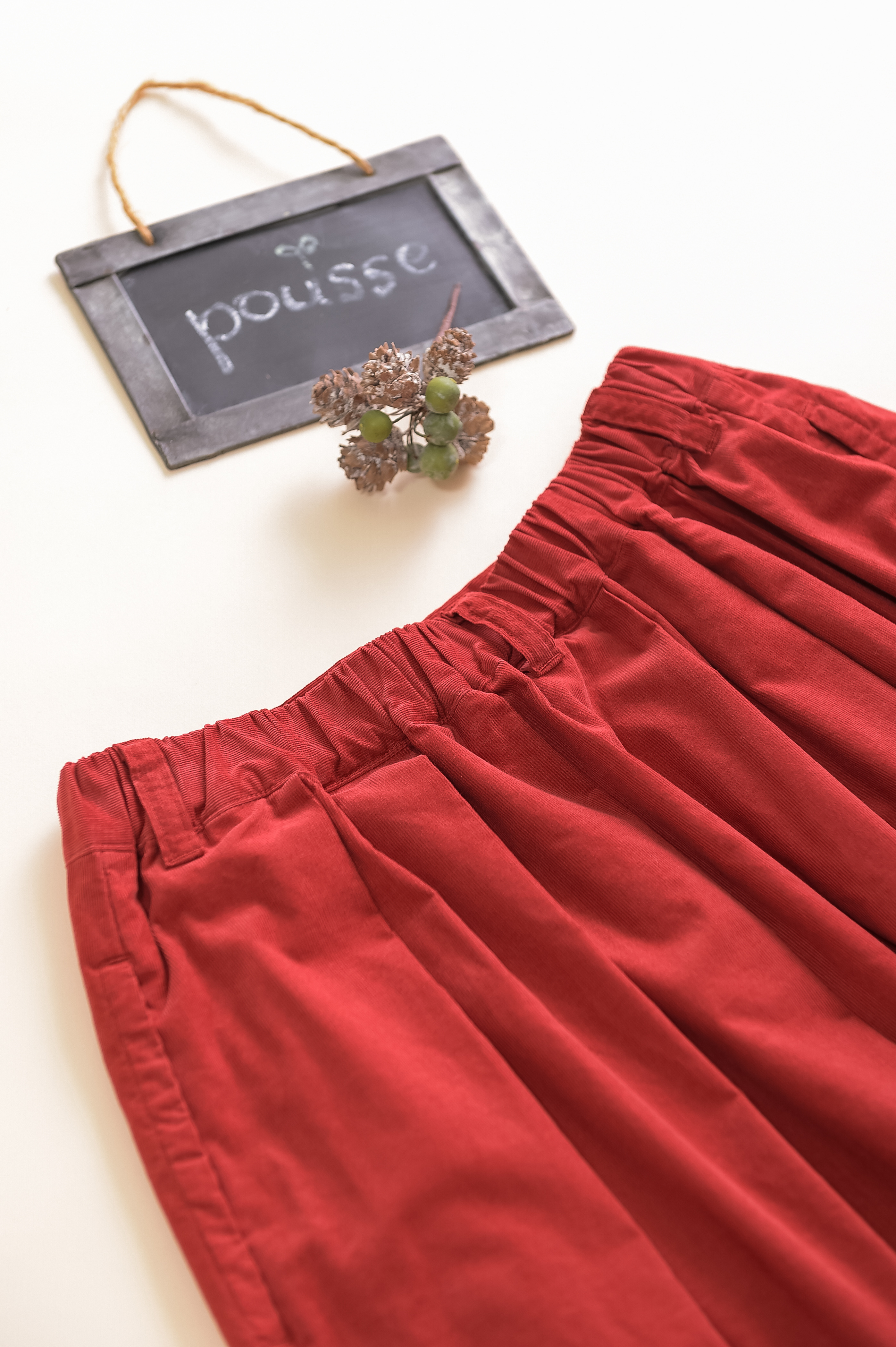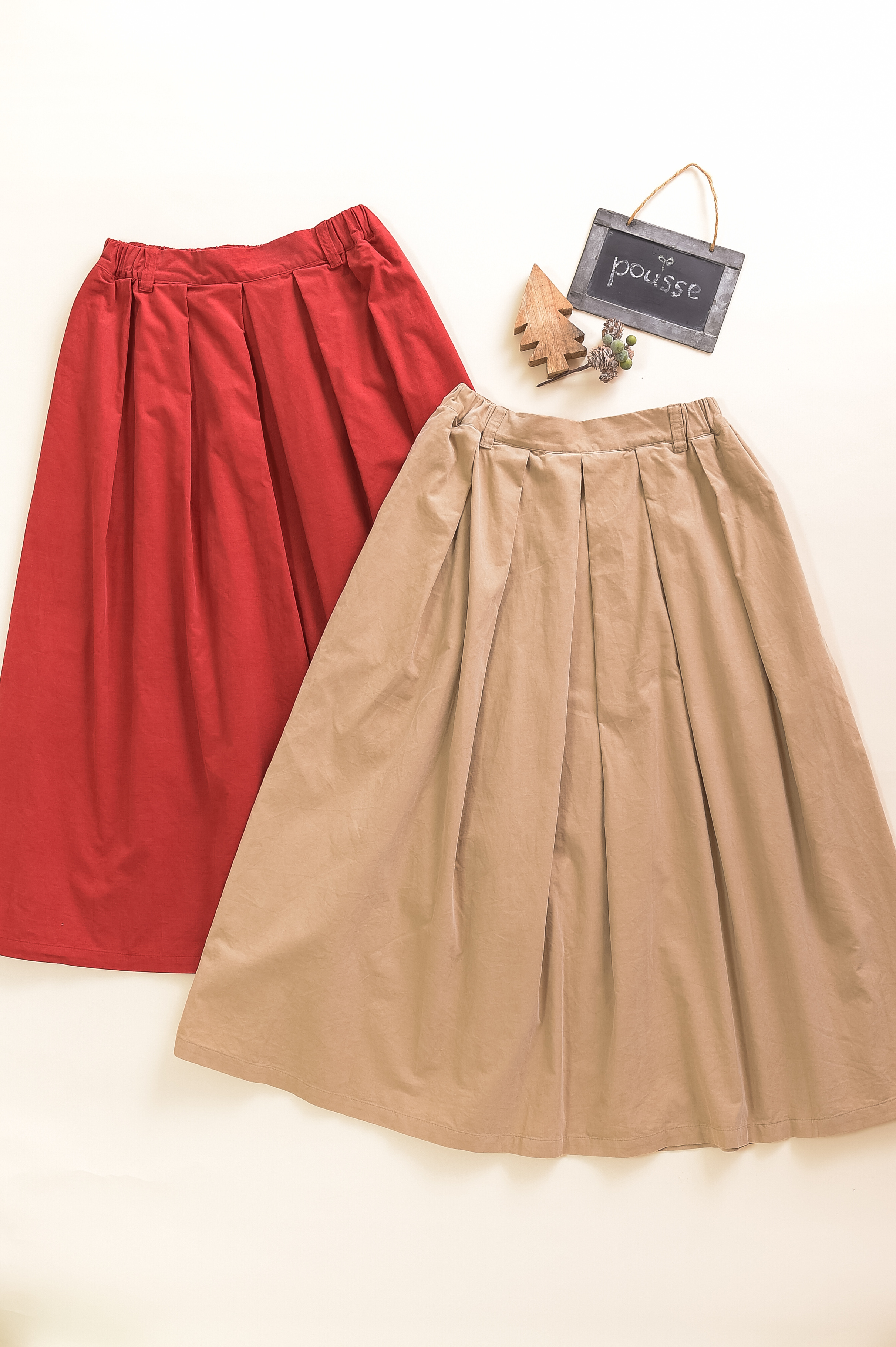 上質感のあるなめらかな肌触りの細コールのスカート。前後にタックを入れることでボリューム感のあるりシルエットに。プルオーバーとセットアップで合わせても甘くなりすぎず、こなれ感のある大人可愛い雰囲気を演出してくれます。