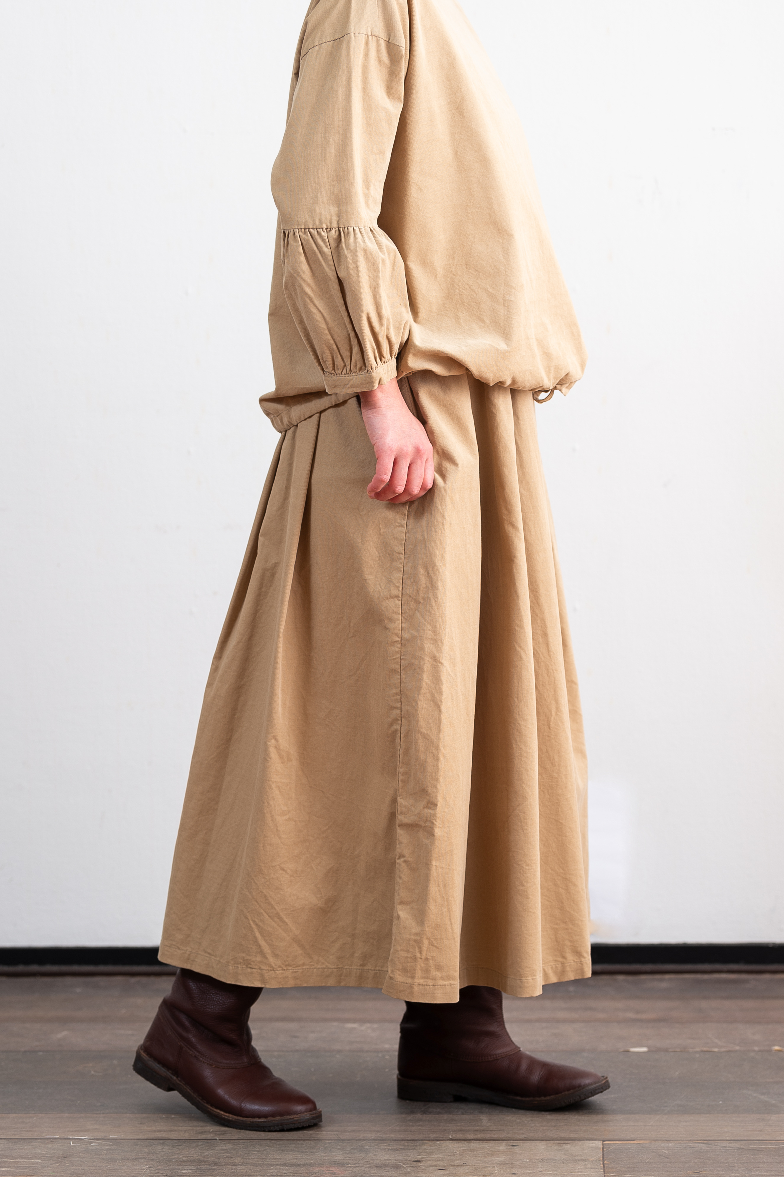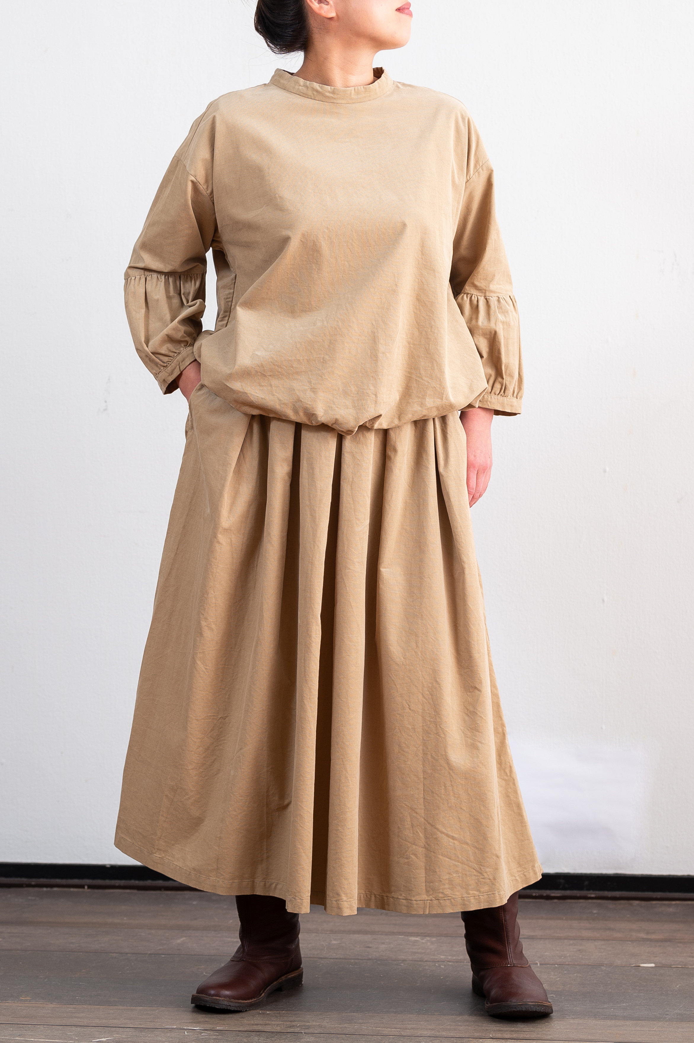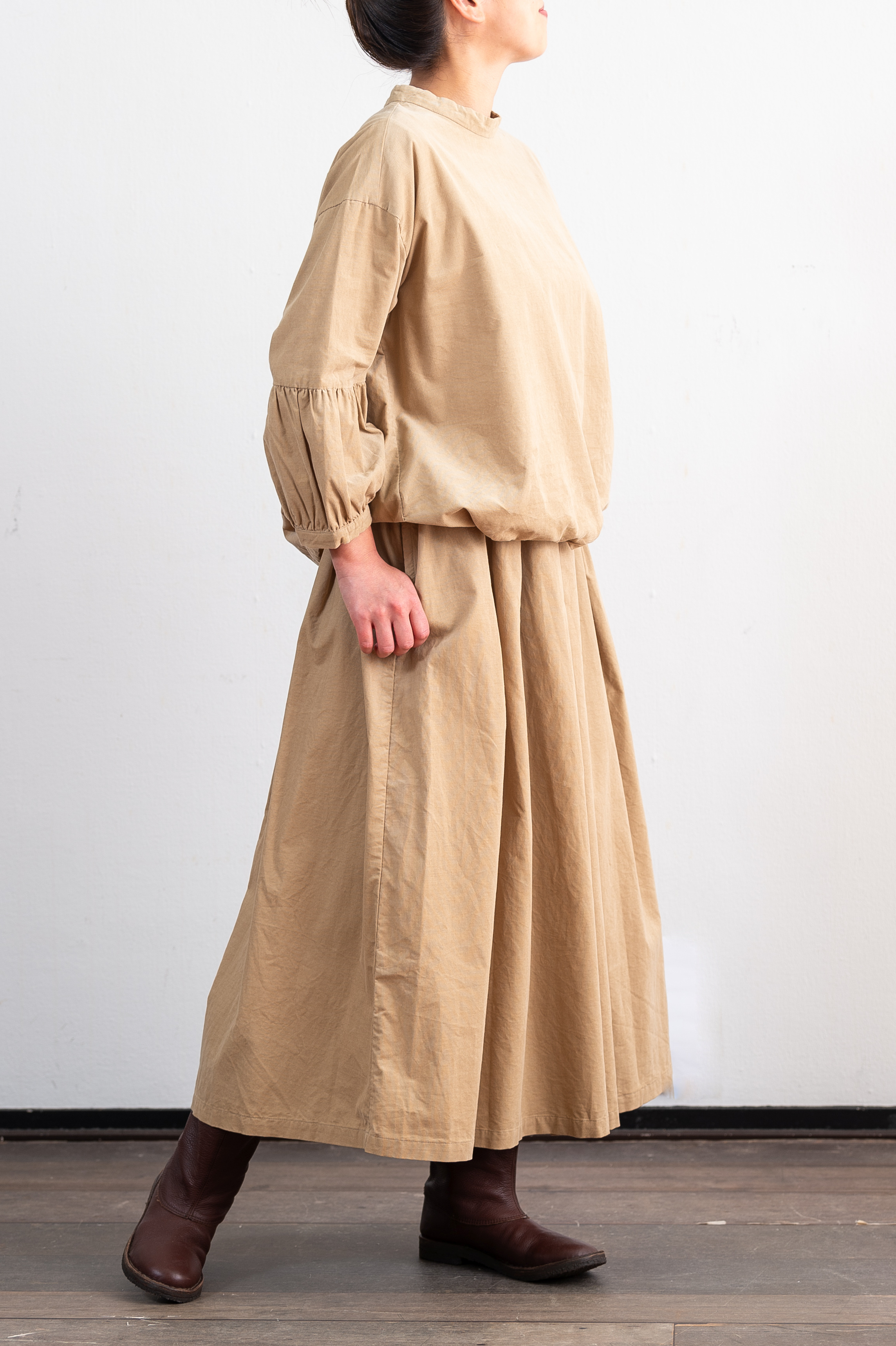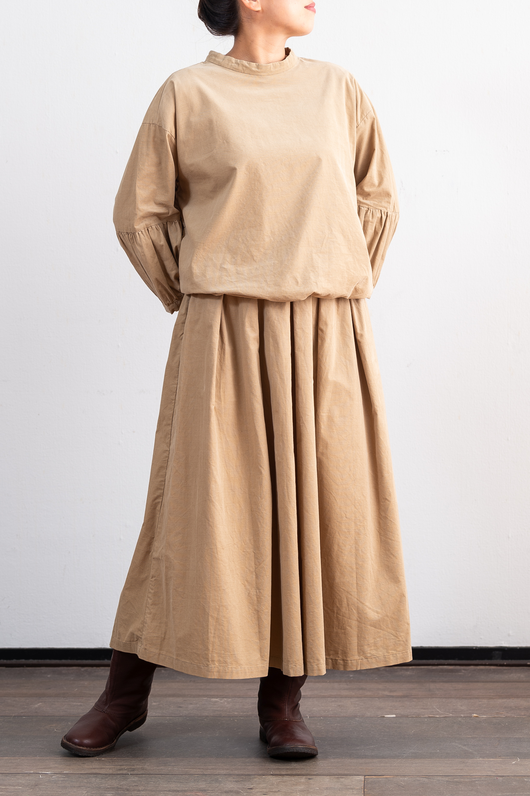 上質感のあるなめらかな肌触りの細コールのスカート。前後にタックを入れることでボリューム感のあるりシルエットに。プルオーバーとセットアップで合わせても甘くなりすぎず、こなれ感のある大人可愛い雰囲気を演出してくれます。