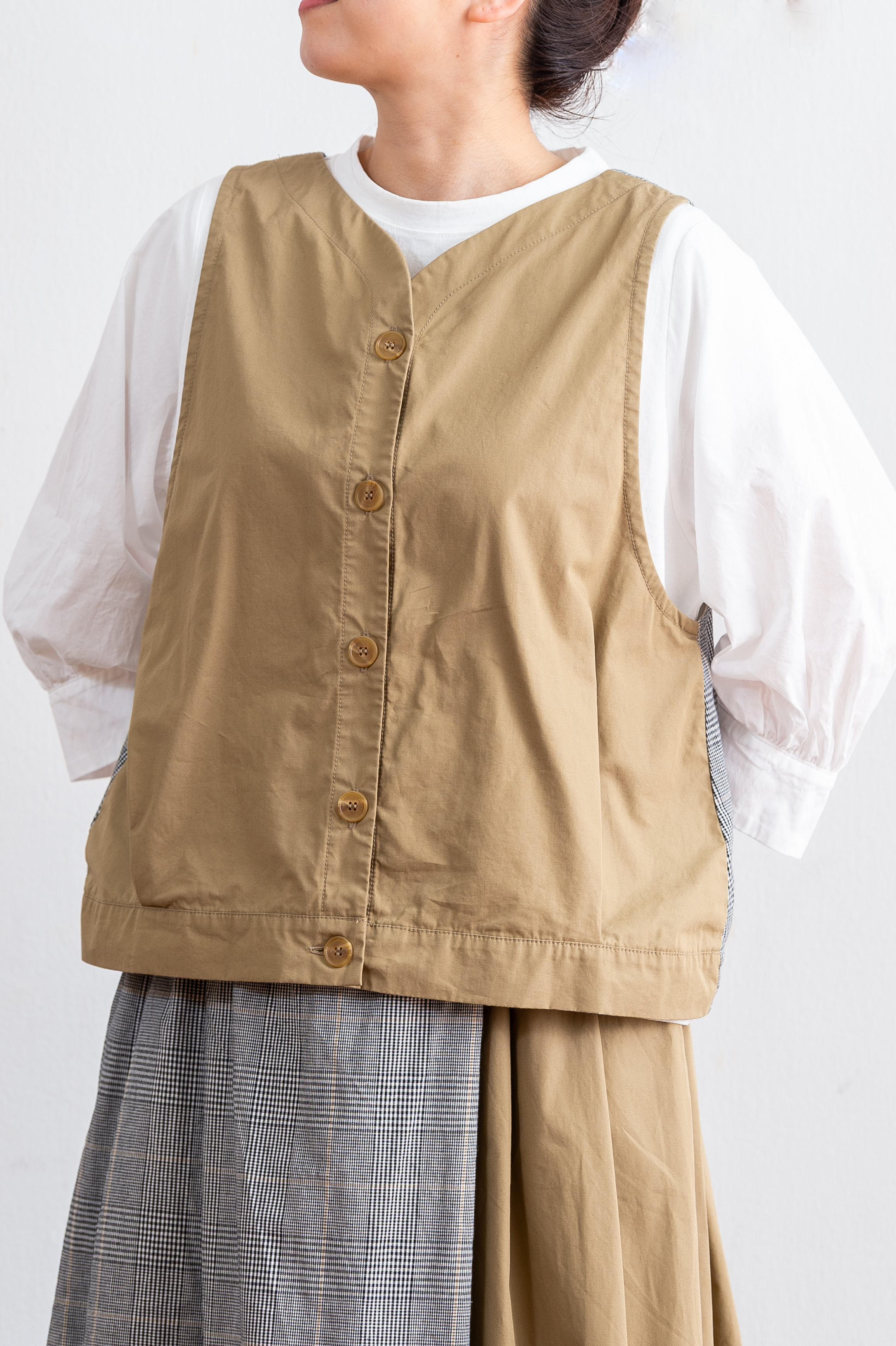 チェック柄×ヴィンテージワッシャーベスト261511 ¥19,800(税込) カラー: コン 残りわずか 数量 1 カートに入れる 特商法に基づく表記(返品等) チェック柄×ヴィンテージワッシャーのベスト。前後を変えれば違う雰囲気が楽しめる2way仕様です。同素材のスカートも前後着用可能なので、シーンに合ったセットアップコーディネートを楽しめます。 コン キャメル