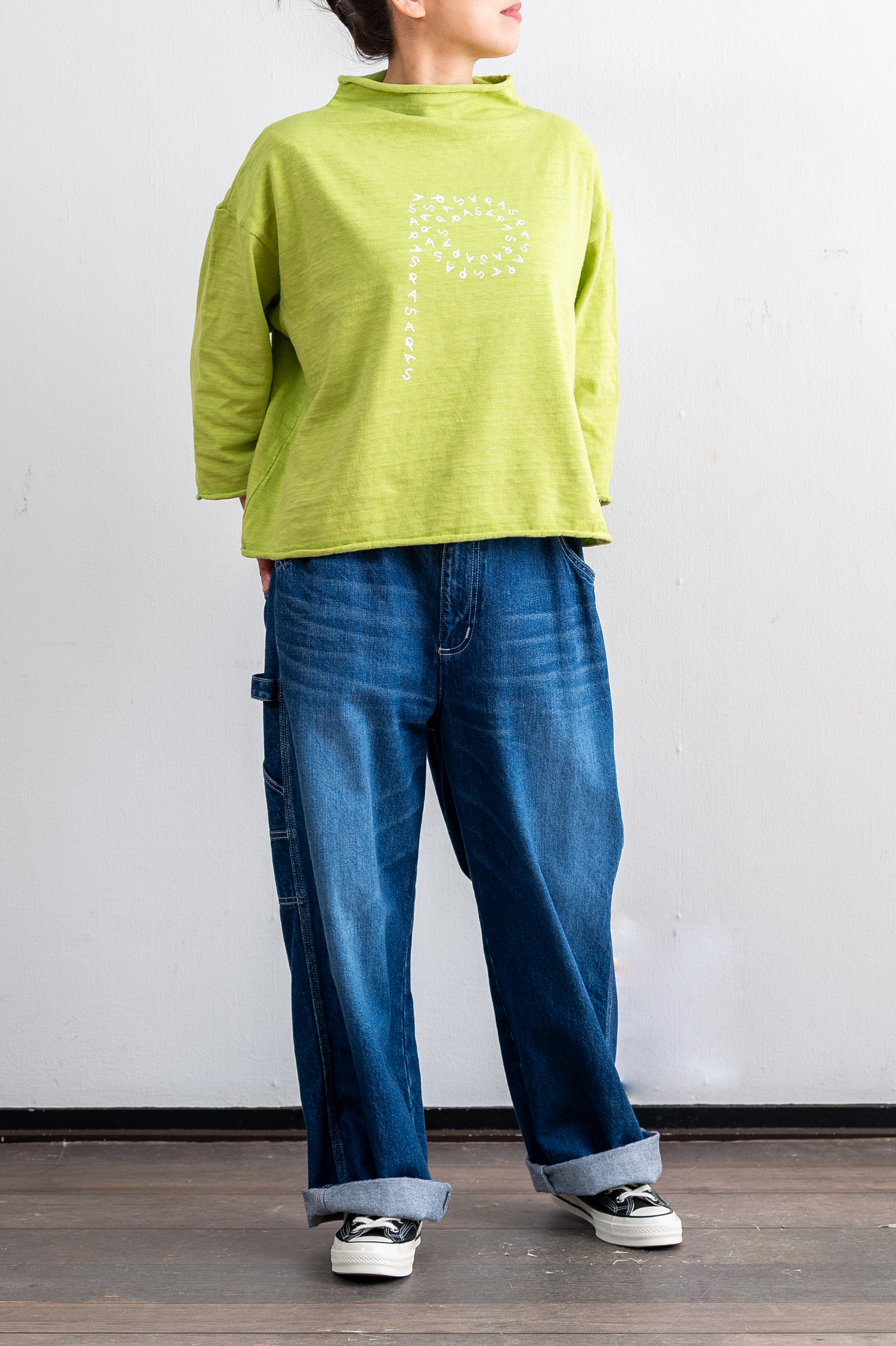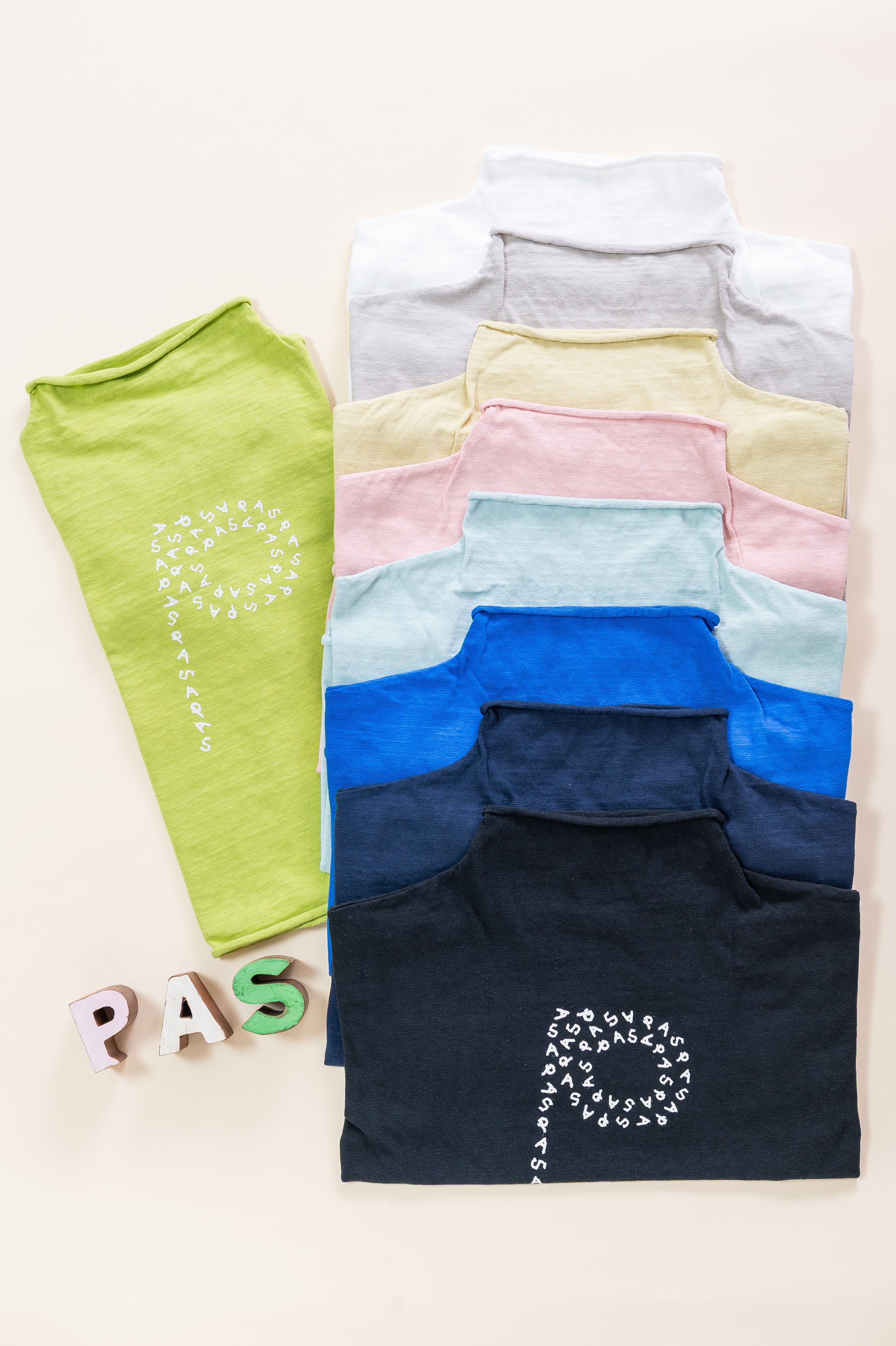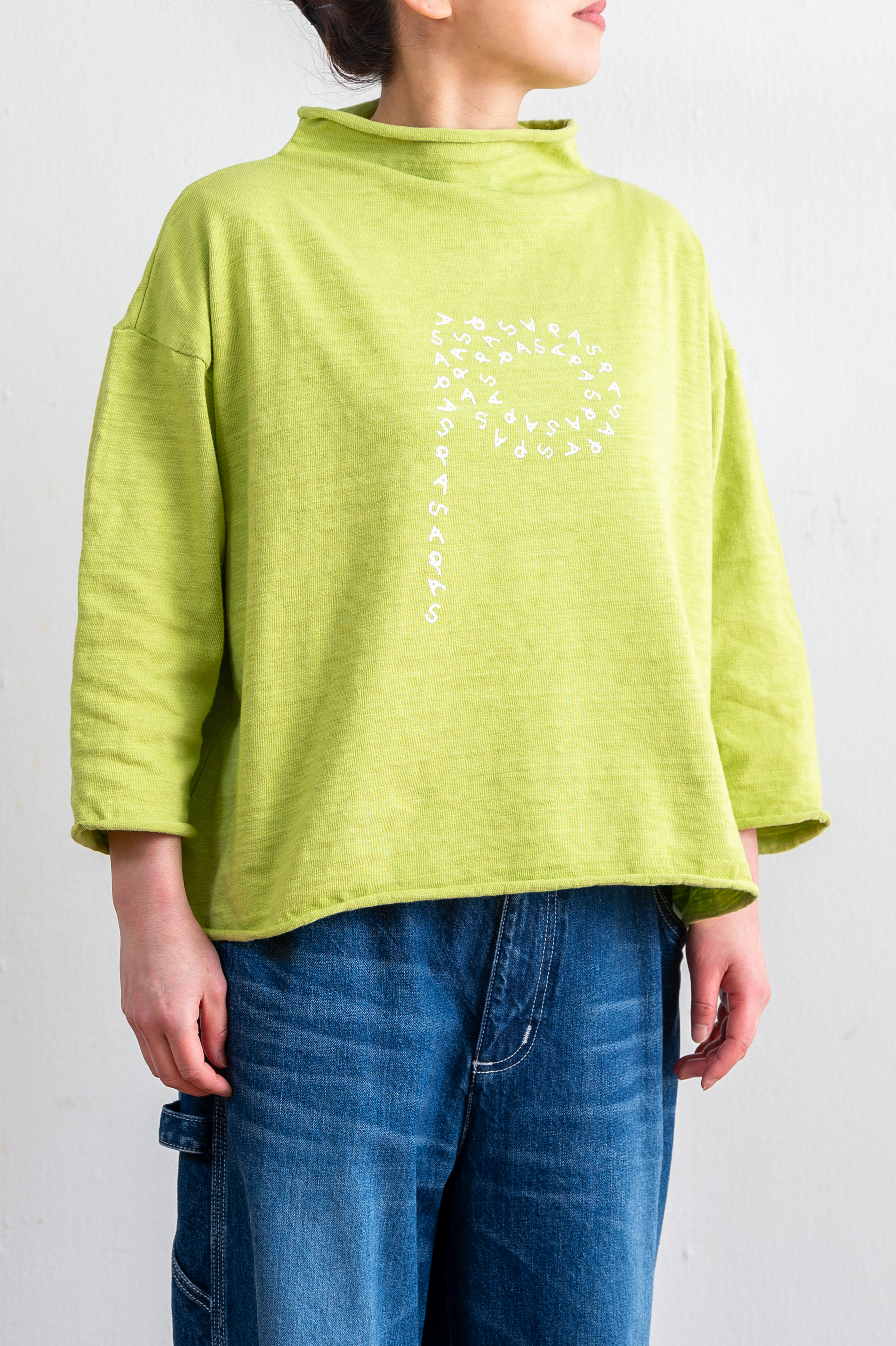 人気のオリジナル天竺シリーズから、遊び心をくすぐるpasオリジナルぐるぐるPプリントが登場。太目のムラ糸を甘めに編むことによる、ふっくらとした柔らかい肌触りが特徴。独特な素朴さとヴィンテージ感は日本製ならではの自信の素材。1枚でも中にシャツを着て重ねても、1年中着られる人気のボトルネックです。
