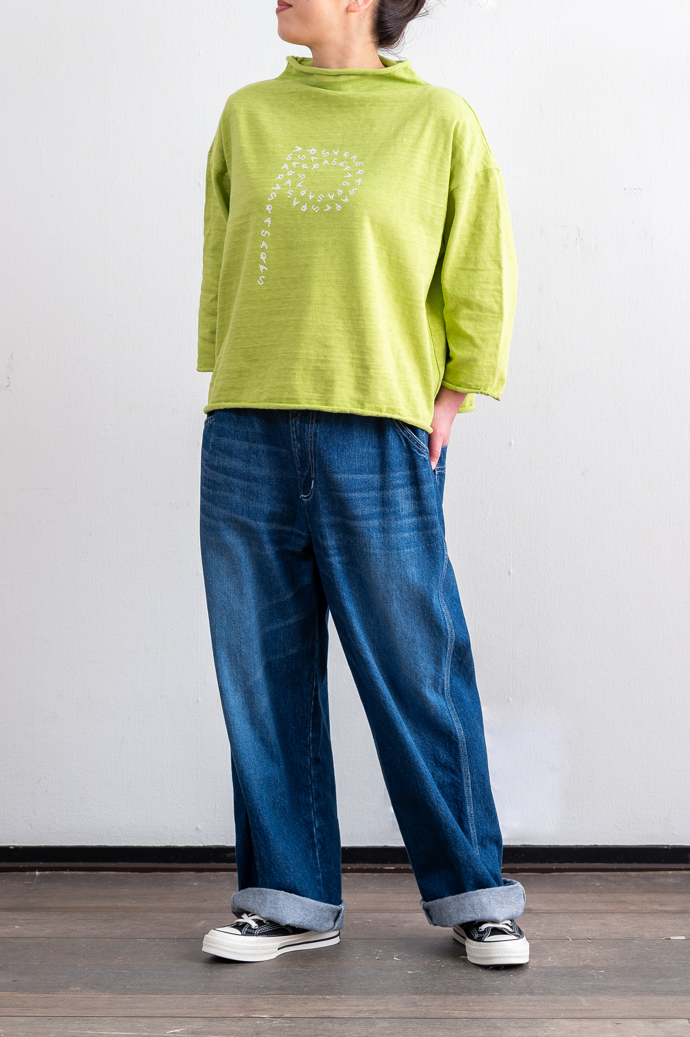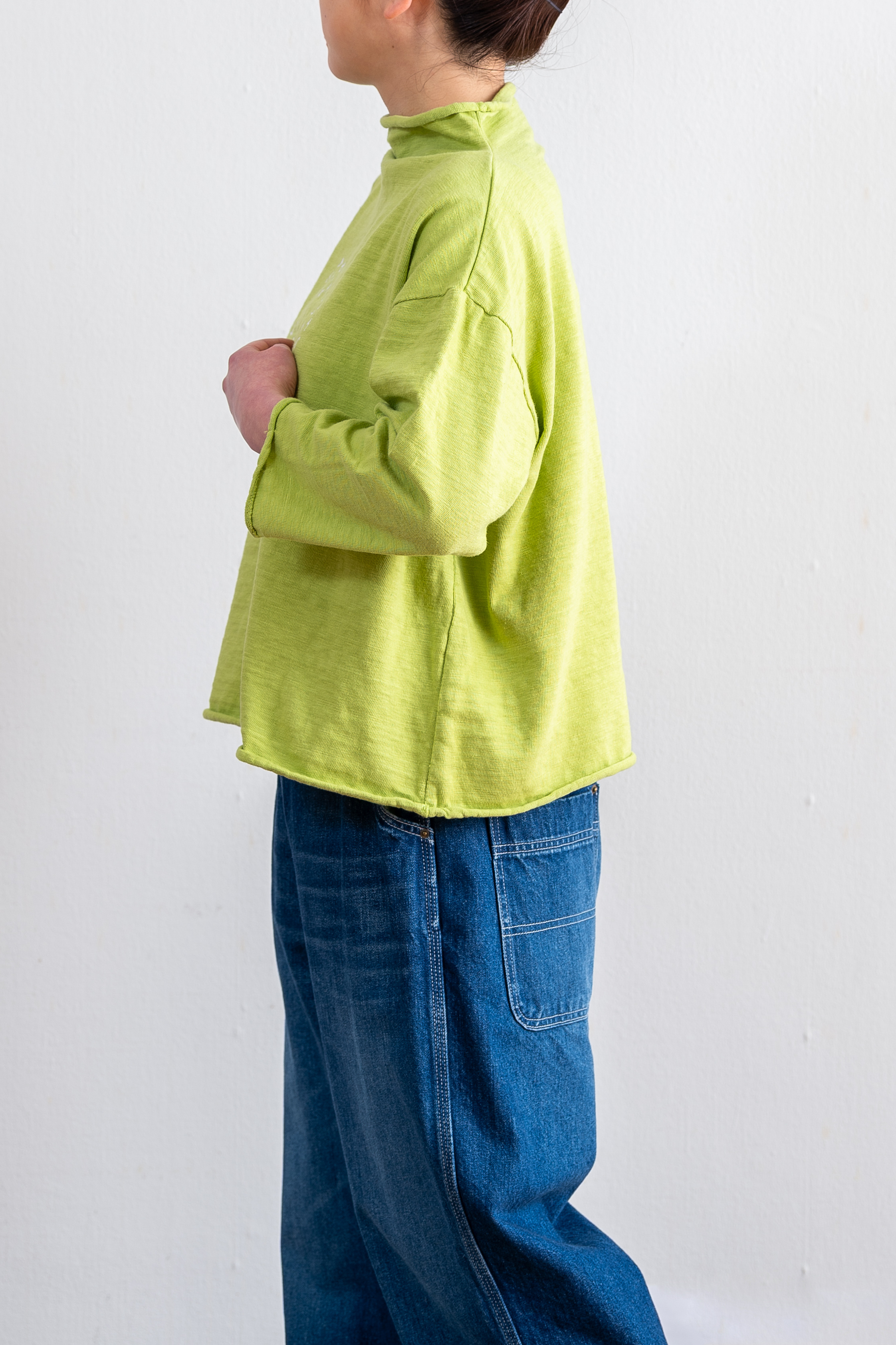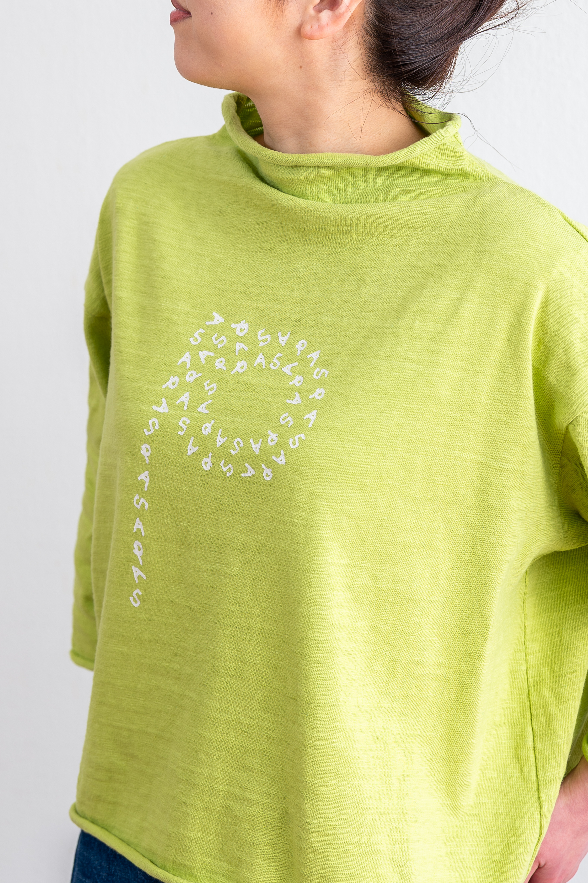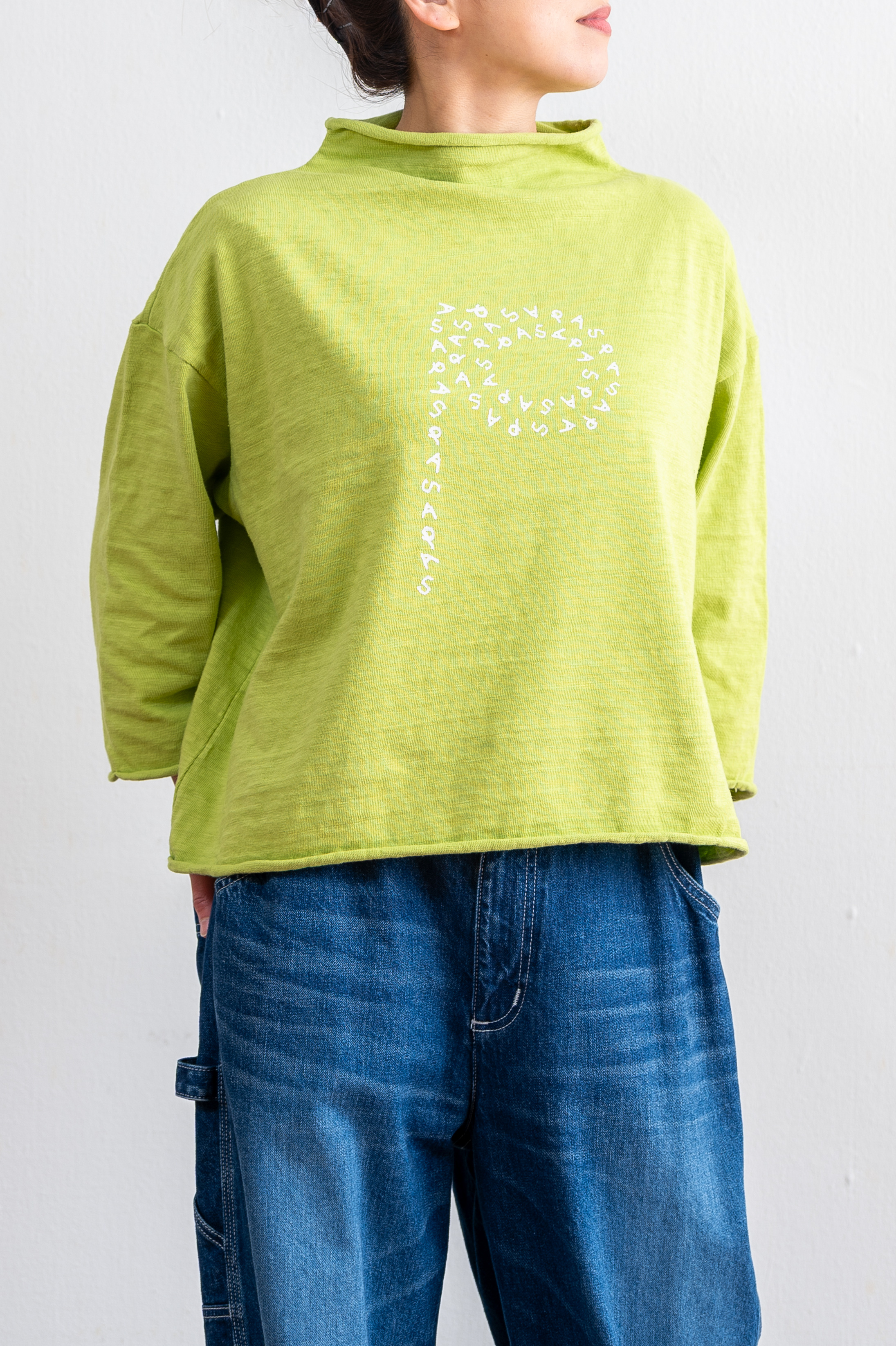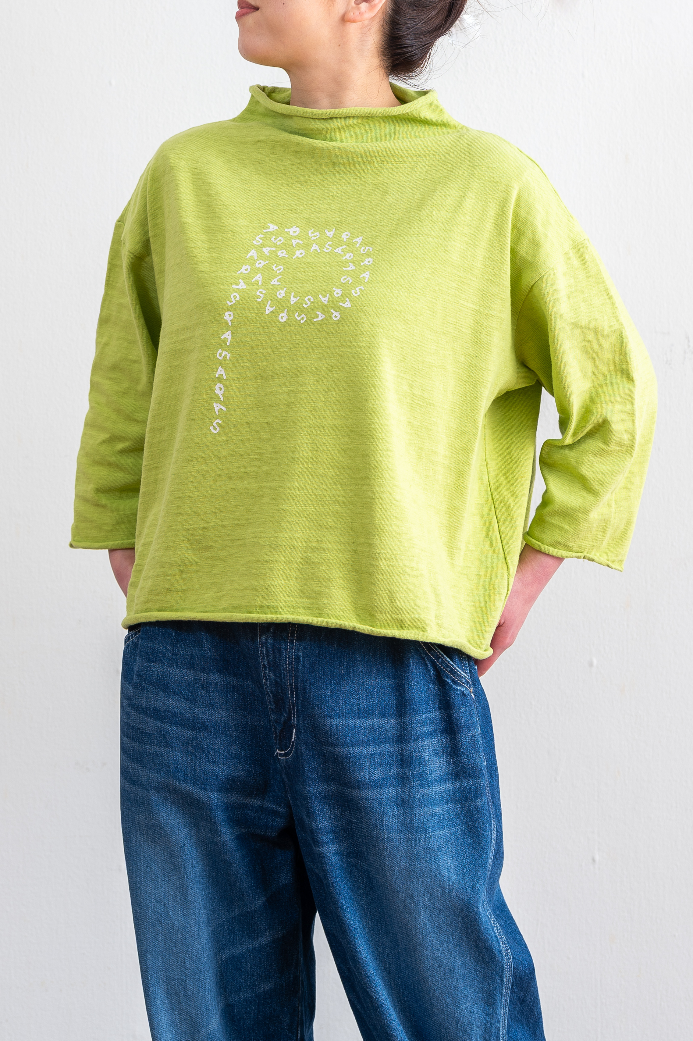 ムラ糸を使用したオリジナル天竺/ぐるぐるPプリント〈ボトルネックショート丈プルオーバー〉10043-5